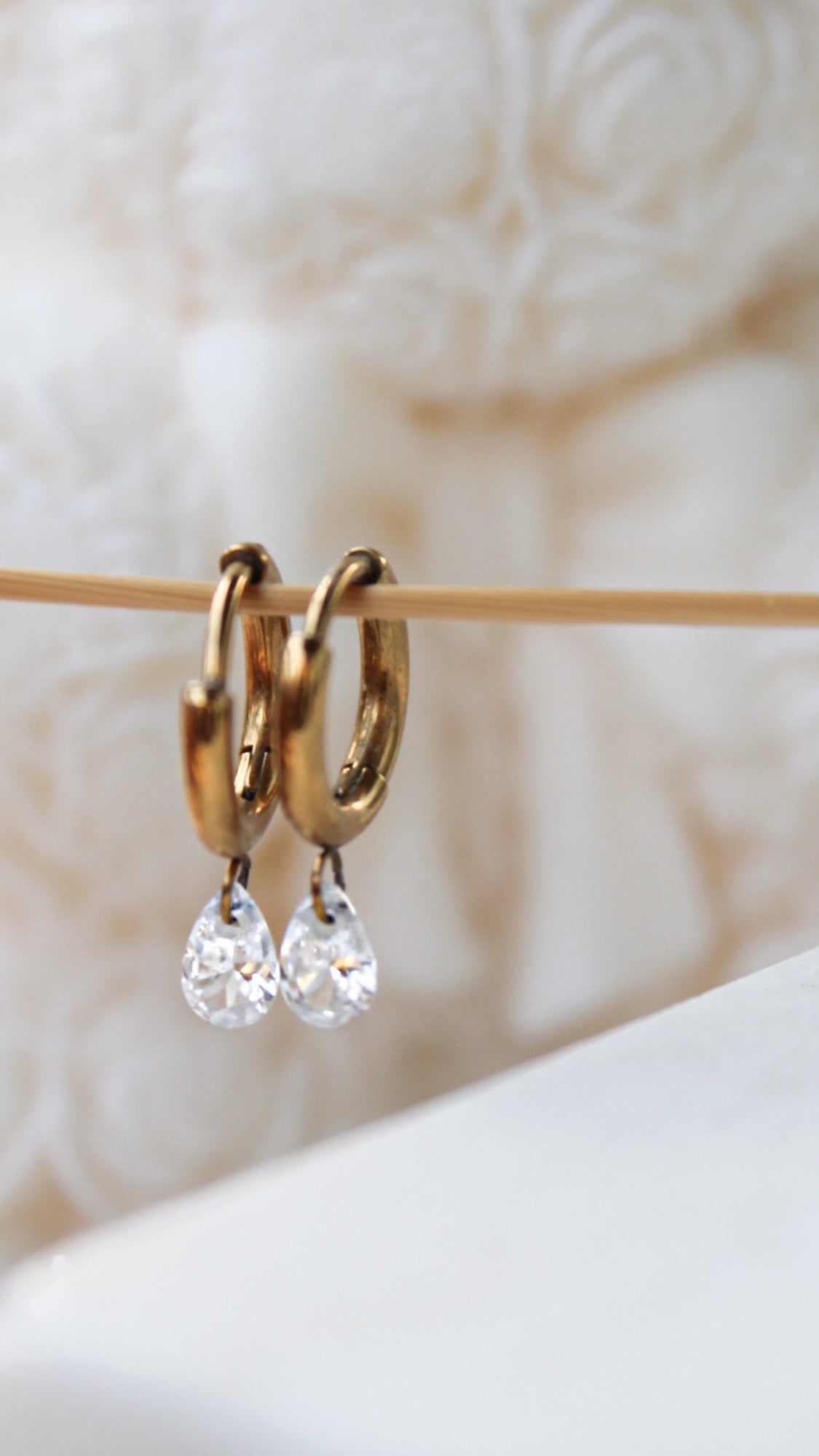 Small huggies with a beautiful teardrop charm. They are great for sensitive skins and perfect for stacking.
