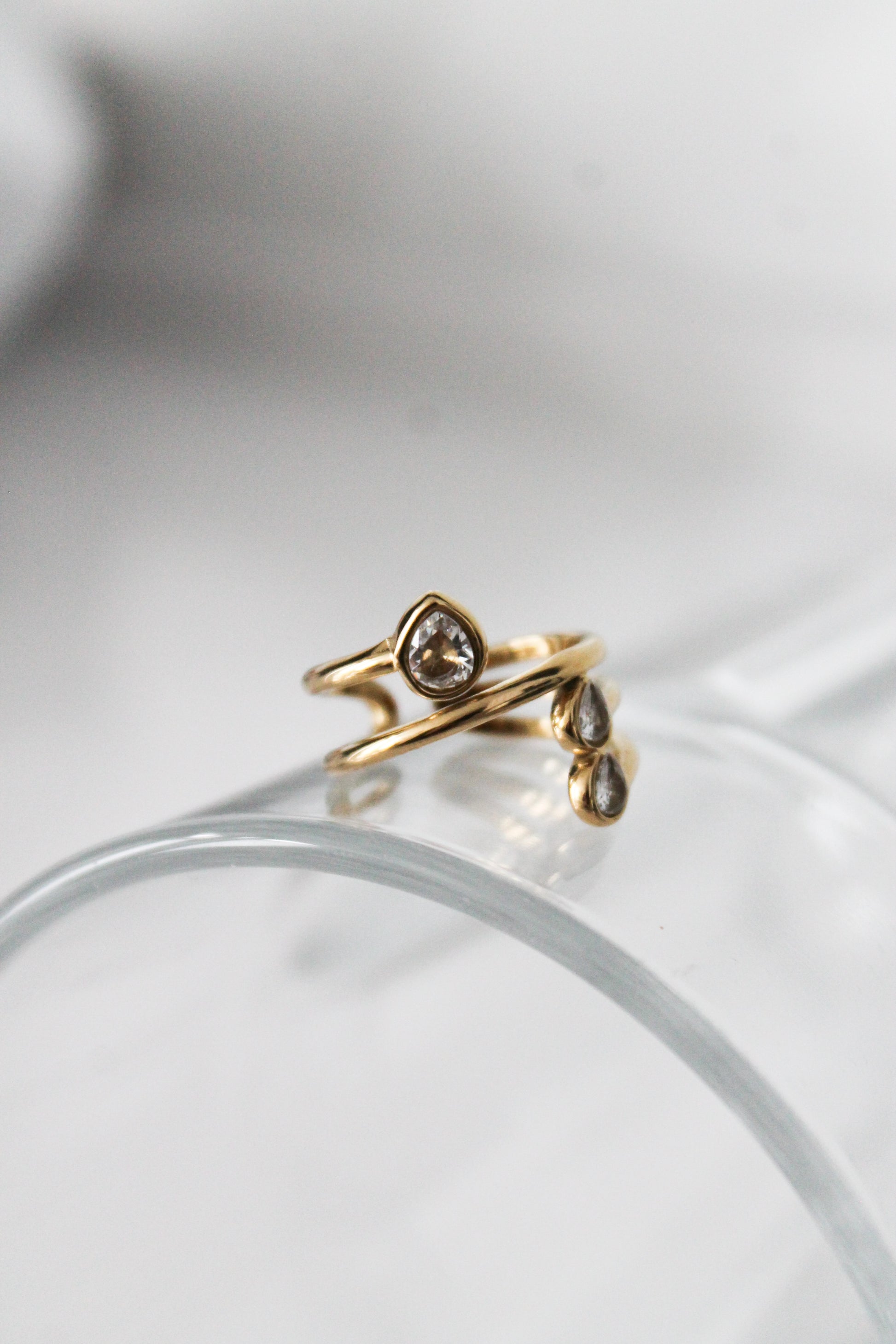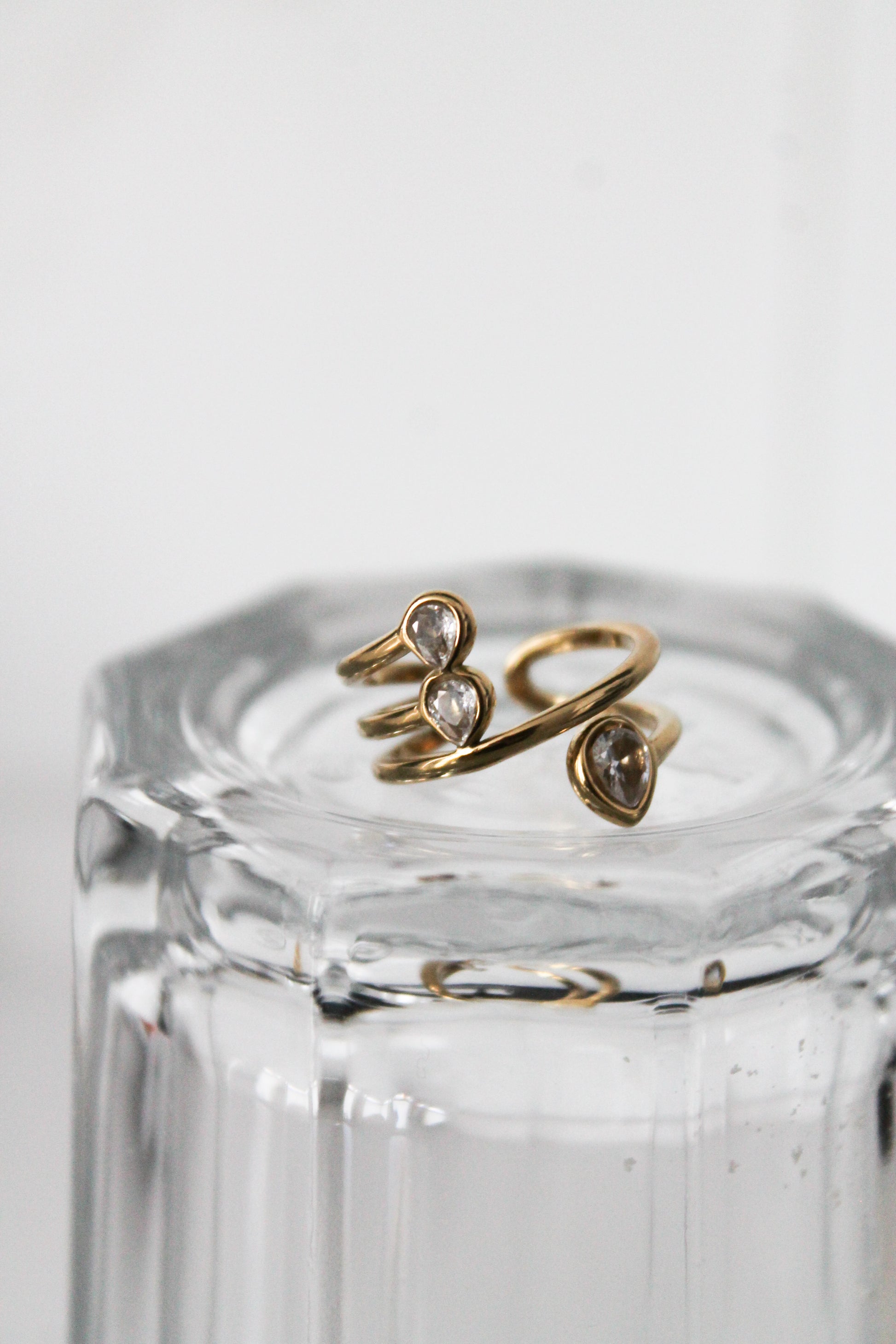 The Cityglow Ring brings the energy of glowing streetlights and late-night strolls to your jewelry stack. With its layered gold bands and teardrop-cut crystals, it captures that perfect balance between minimal and eye-catching.