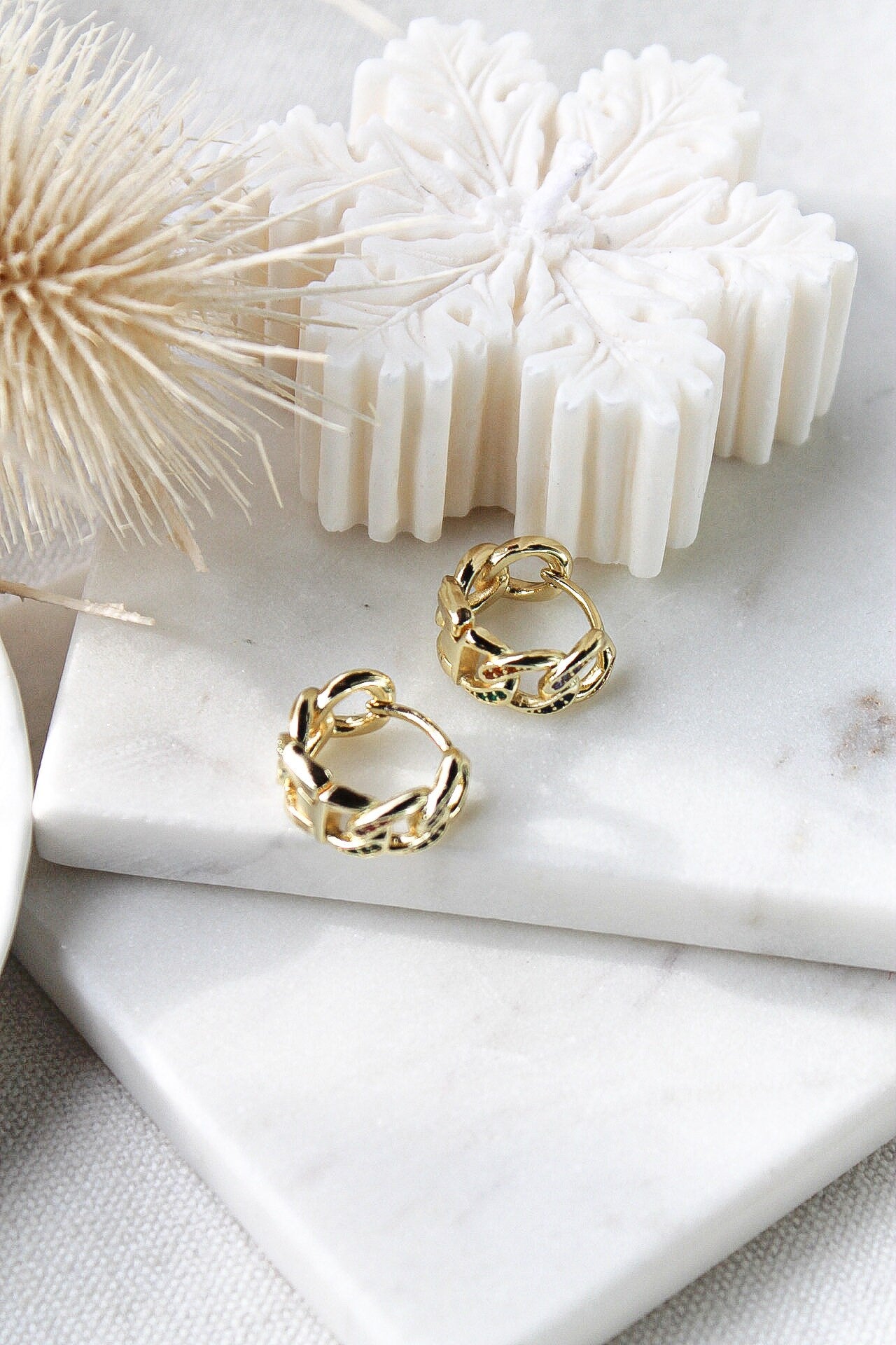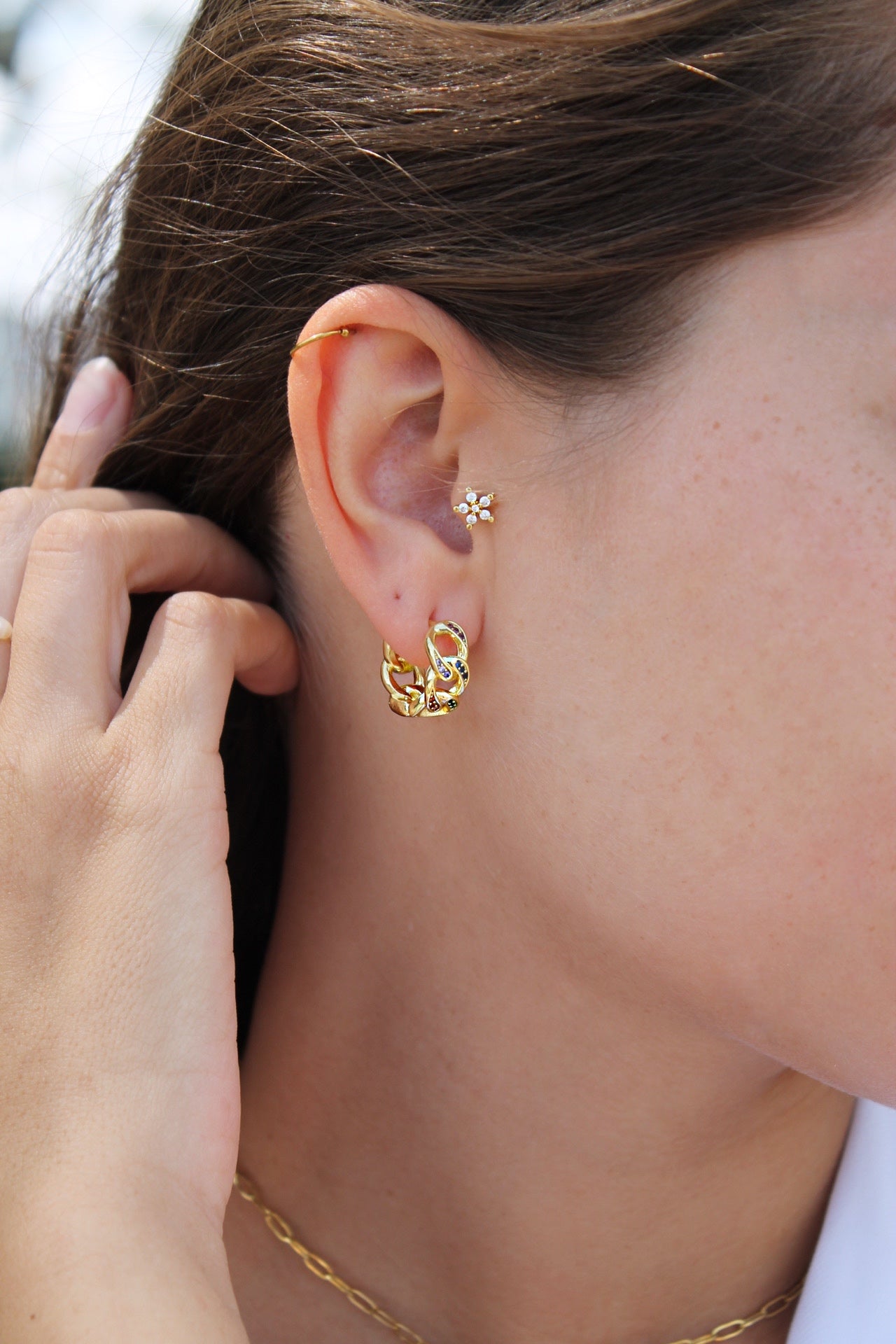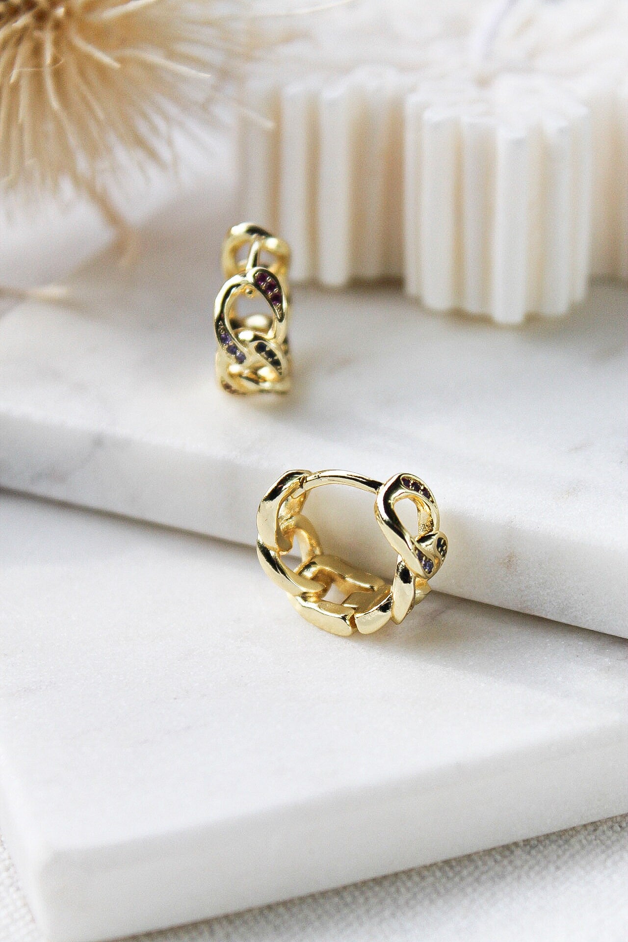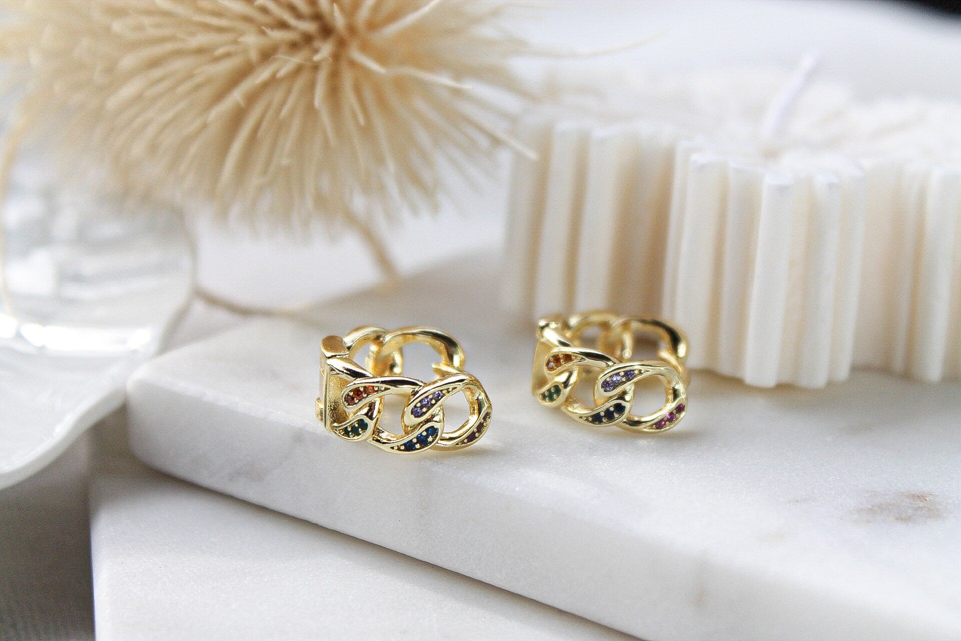 Medium size link hoops, with colourful zirconia, no nickel and allergy free. They are perfect for everyday, and can be layered with other Huggies from our shop.