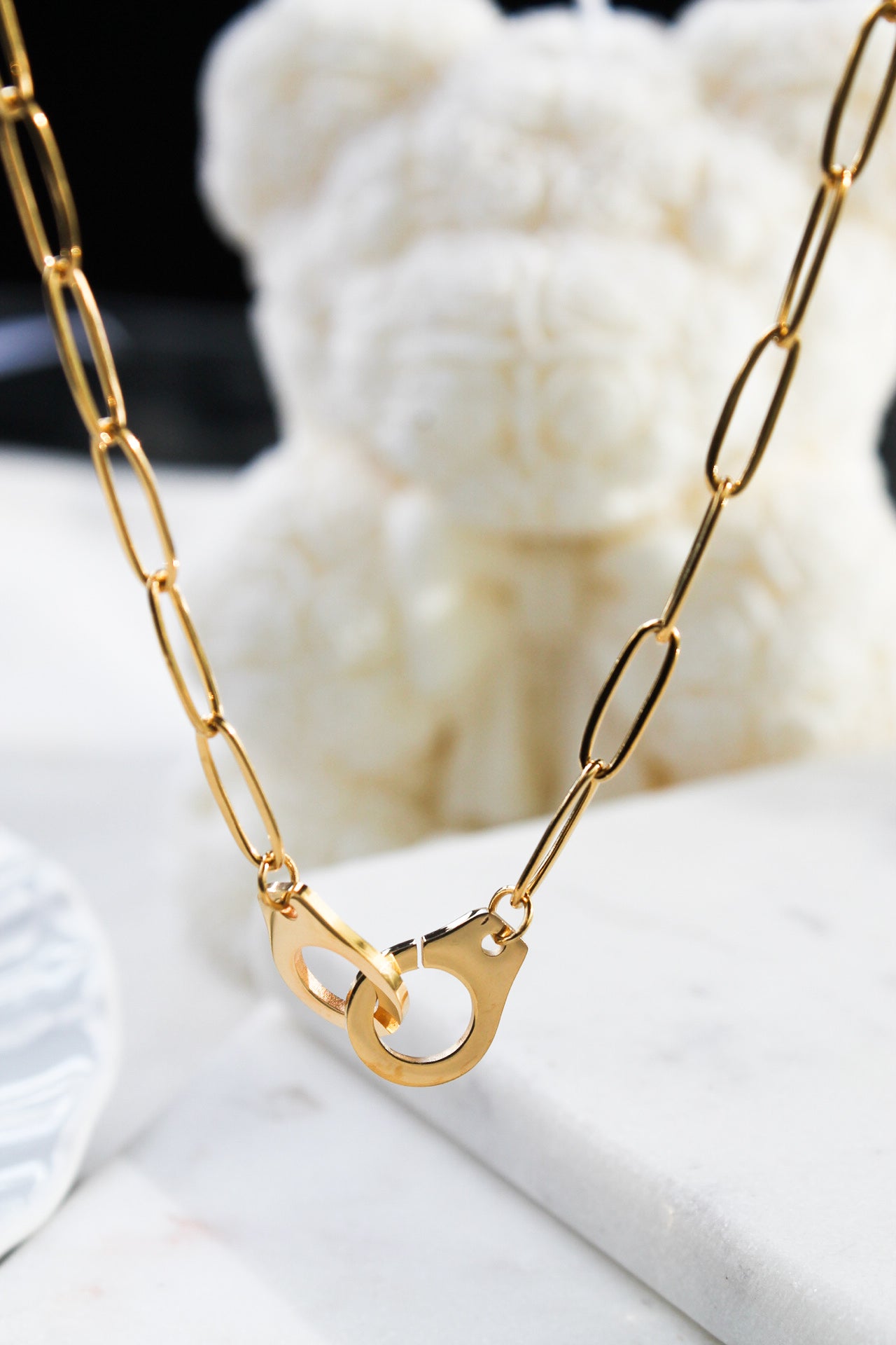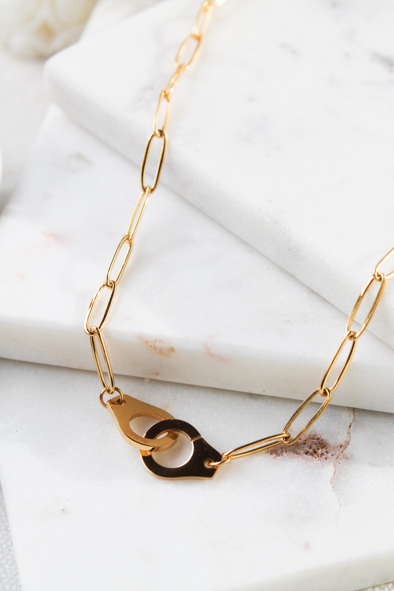 Tap into bold styling with the Locked Up Necklace — a chunky paperclip chain paired with a gold lock pendant for an edgy statement. Made from waterproof stainless steel with a PVD gold finish, it’s tarnish-resistant, hypoallergenic, and built to last.