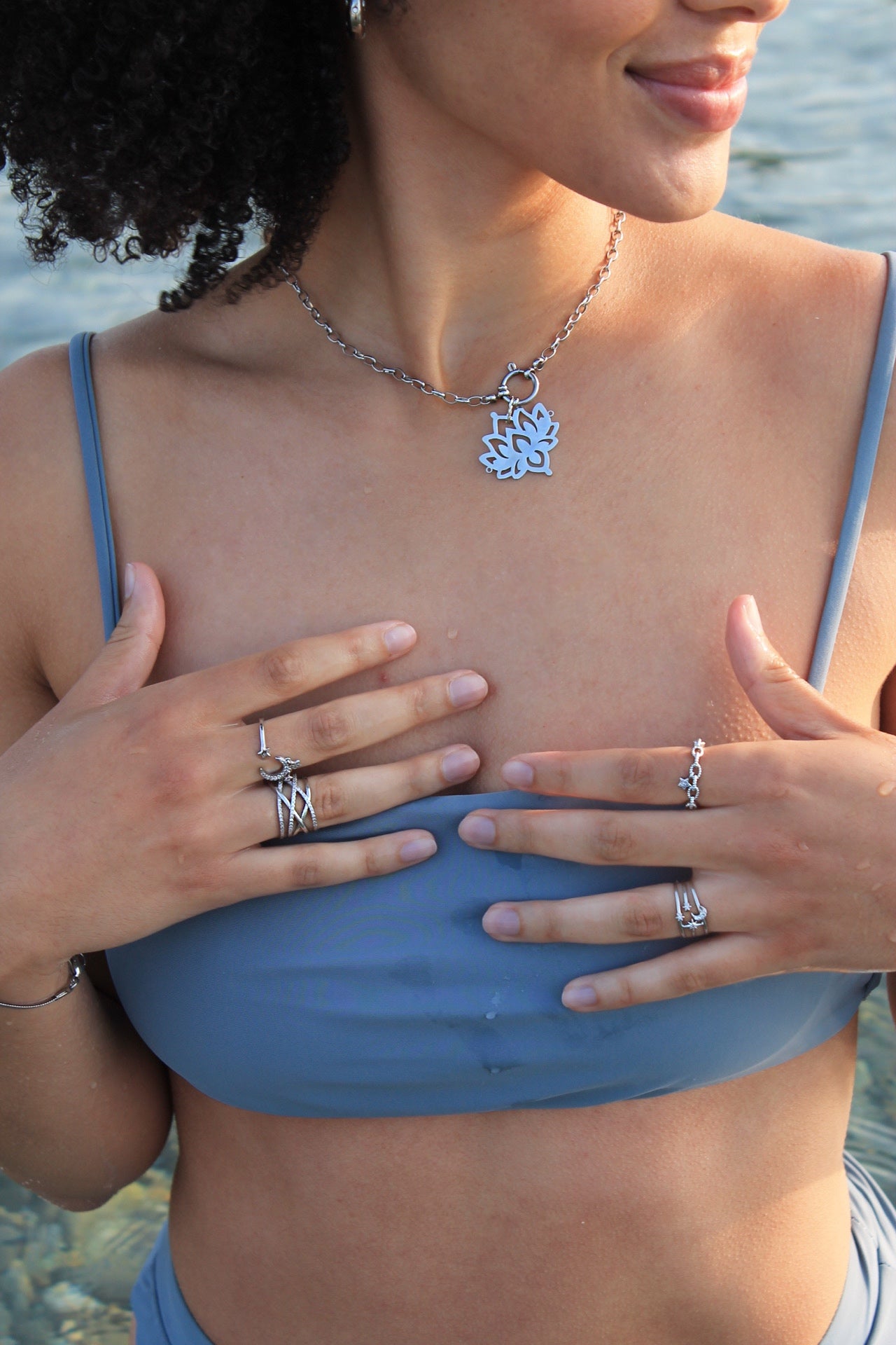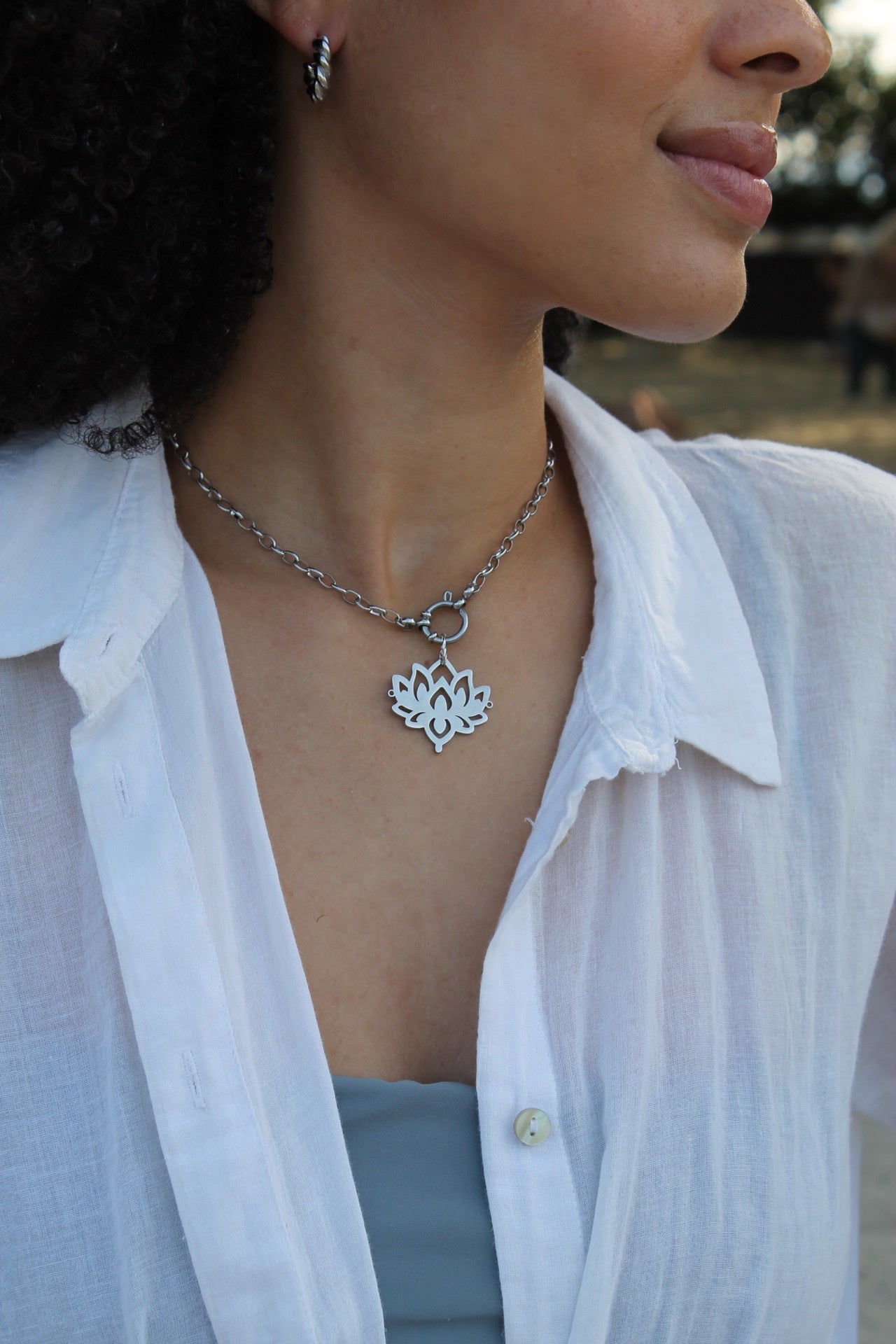 Statement Necklace with a big Lotus charm. It can be removed and more charms can be added.