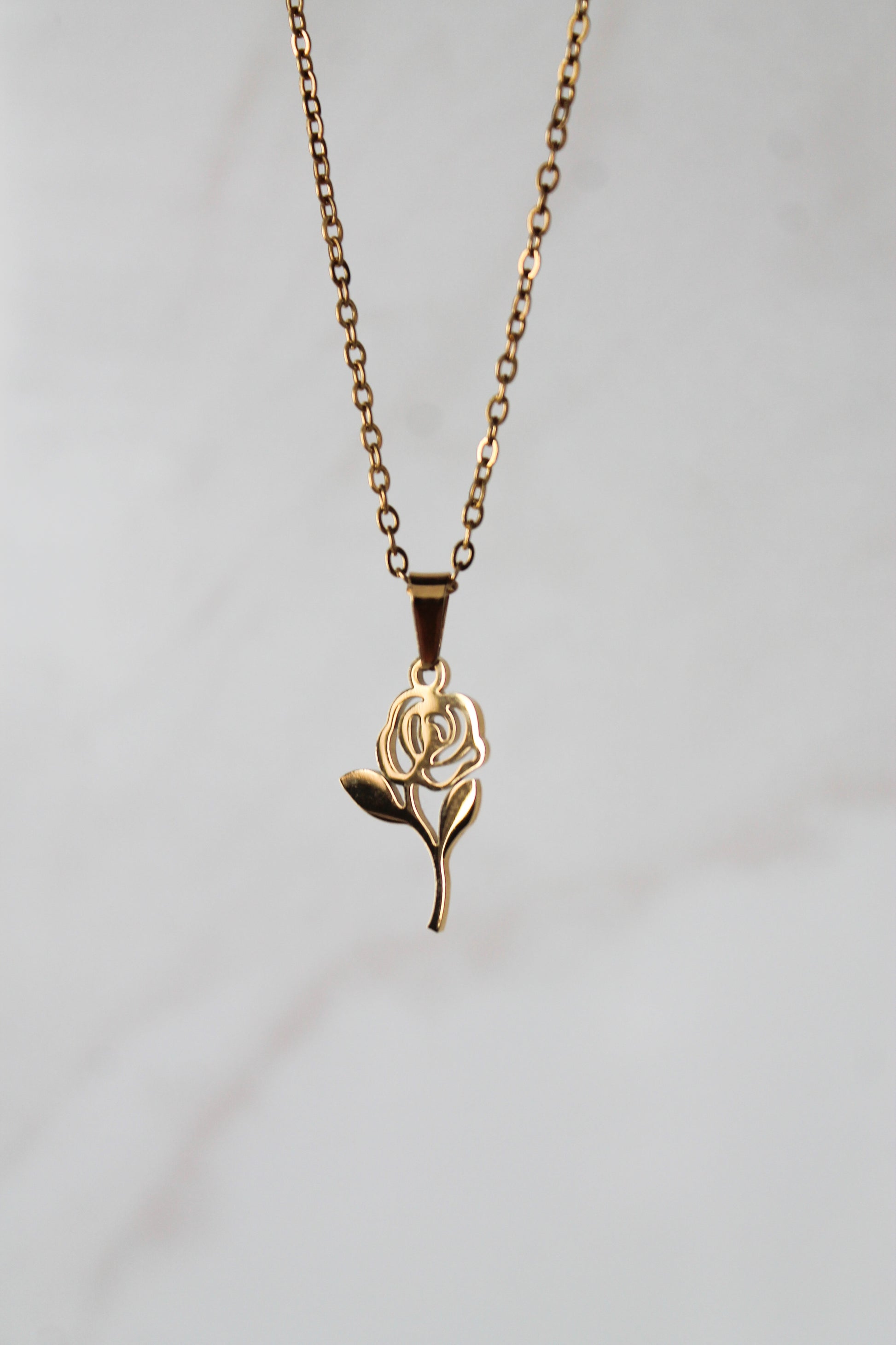 The Rosa Necklace is a must-have for any flower lover. This delicate chain features a beautiful rose charm that will never wilt or fade, unlike real flowers. It's the perfect accessory for any occasion.
