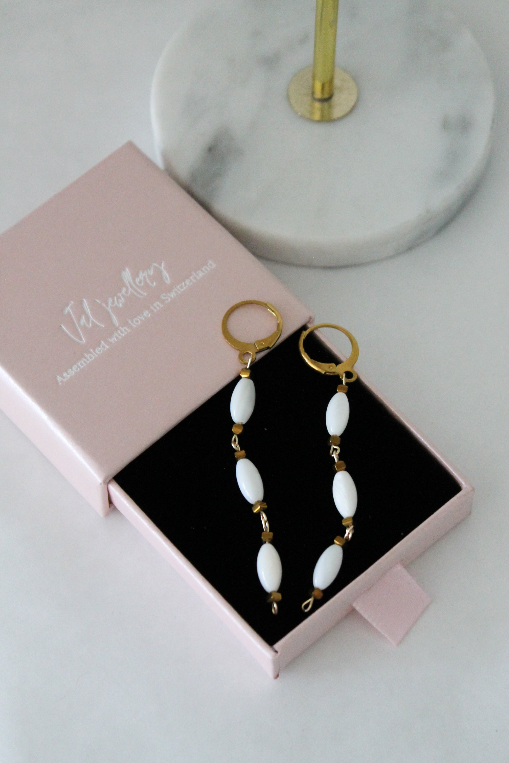 These Snowhite earrings are meticulously handmade in Switzerland, making each pair unique. The dangle design adds timeless elegance to any outfit. Plus, these hypoallergenic earrings ensure comfortable wear for even the most sensitive ears. Elevate your style with Snowhite.