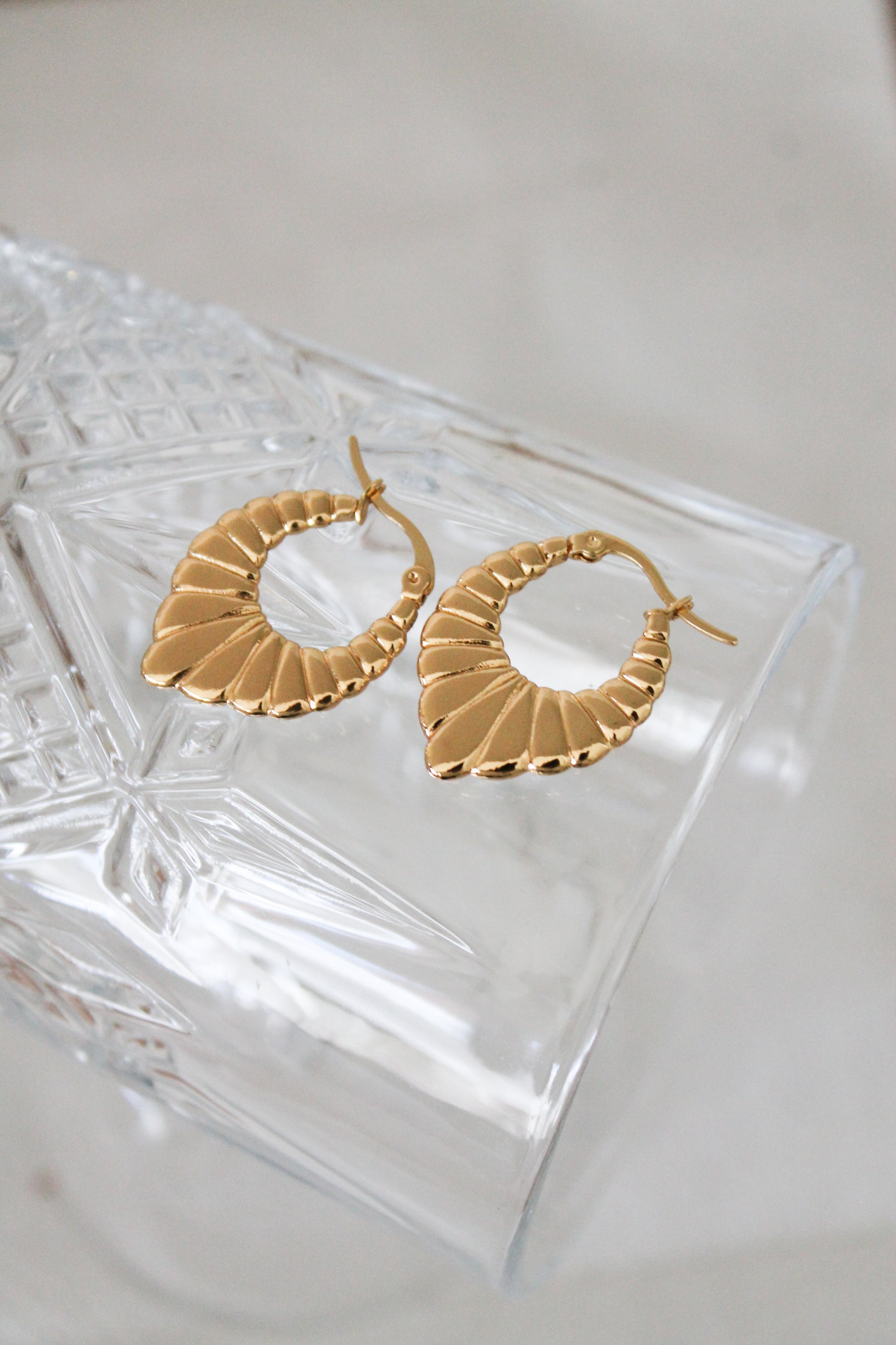 These Sunlit Hoops are here to add a unique twist to your earring collection. With a design reminiscent of a seashell, you'll be bringing the beach vibes wherever you go. Hoop earrings just got a whole lot more interesting!